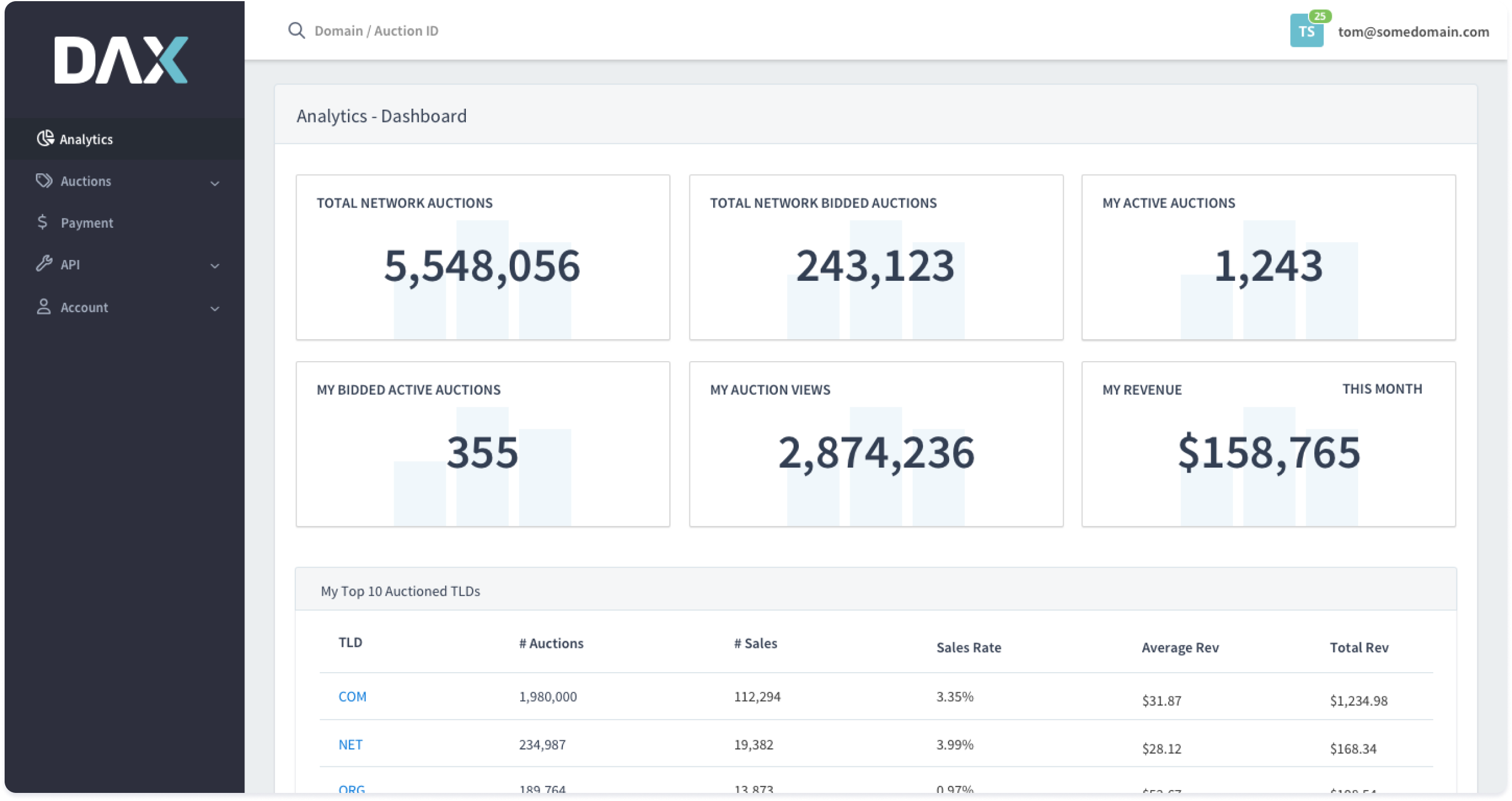 Send your domains to DAX and host your own onsite Auctions